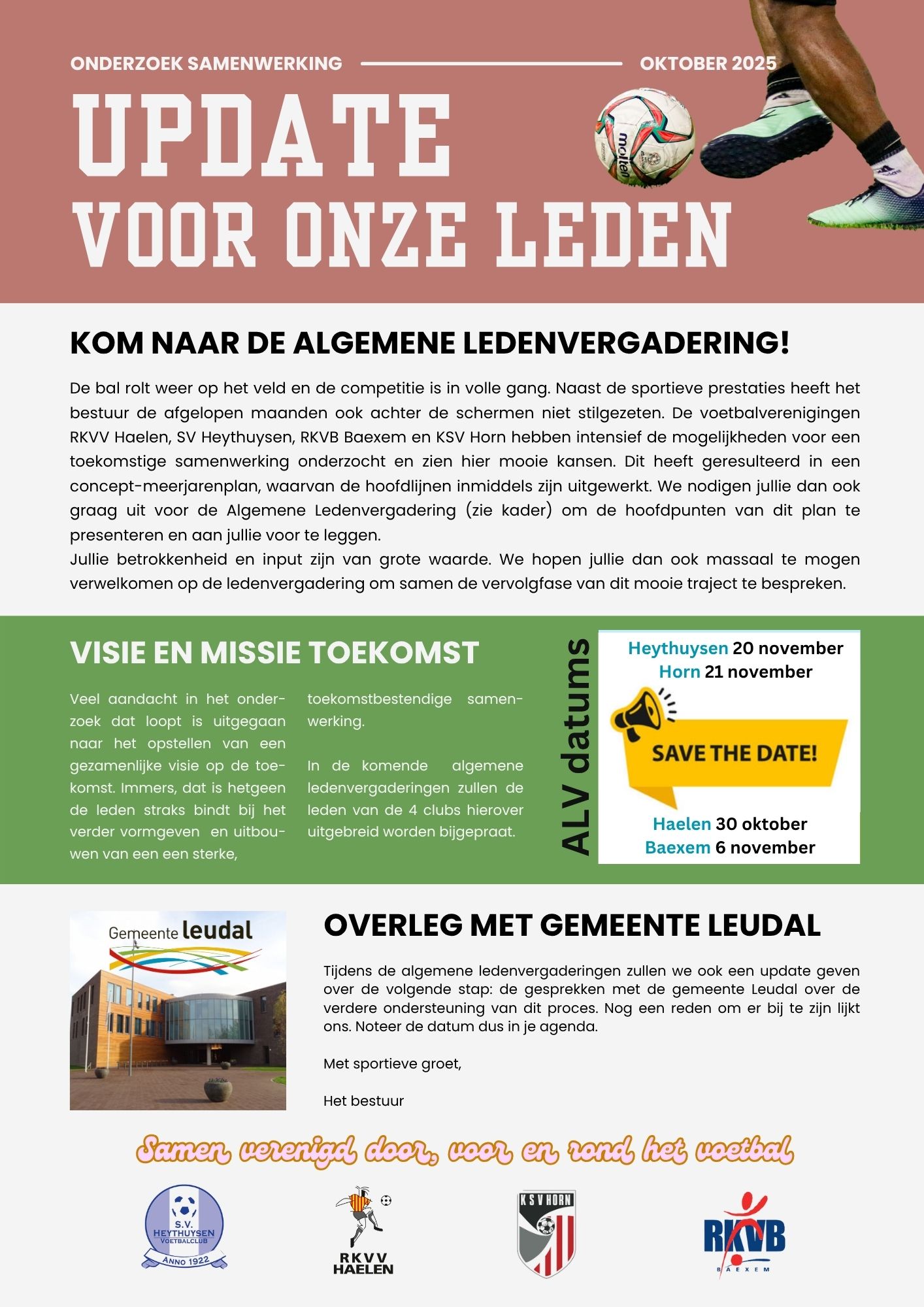 De vier voetbalverenigingen RKVV Haelen, SV Heythuysen, RKVB Baexem en KSV Horn onderzoeken samen de mogelijkheden voor samenwerking in de toekomst.